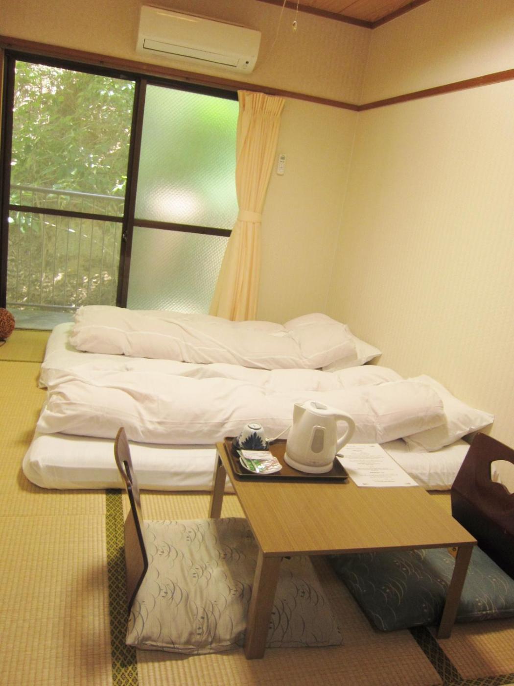 Economy Japanese-Style Twin Room with Mountain View. This air-conditioned room features mountain views, tatami (woven-straw) floors and Japanese futon bedding. Each comes with a flat-screen TV and an electric kettle with green tea bags. Comes with an en suite bathroom. ;