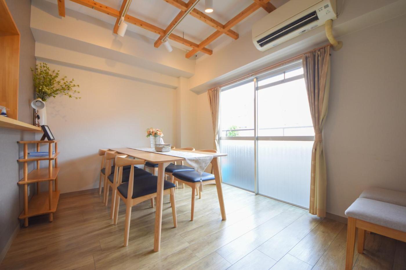 Two-Bedroom Apartment. Boasting a private entrance, this spacious apartment also features 2 bedrooms, a seating area and 1 bathroom with a bath and a shower. In the well-fitted kitchen, guests will find a stovetop, a refrigerator, kitchenware and a microwave. The apartment features air conditioning, a washing machine, tatami, a dining area, as well as a TV. The unit has 2 beds and 2 futons.