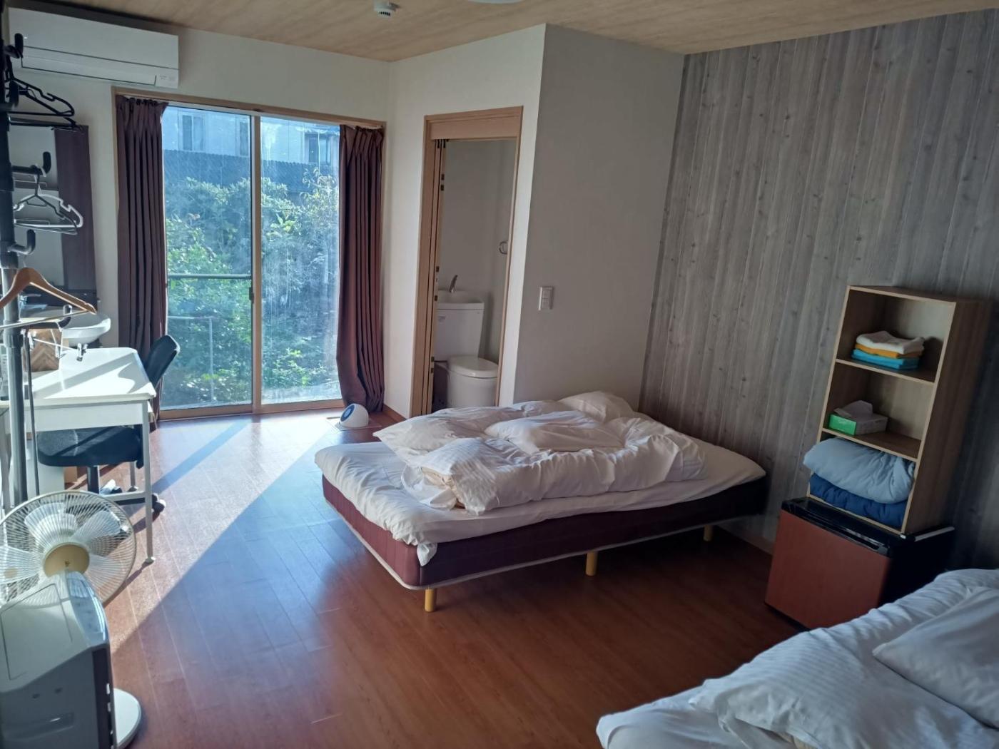 At the hotel, each room has a desk. The rooms are equipped with a shared bathroom with a shower, free toiletries and a hairdryer.guest rooms will provide guests with a fridge.