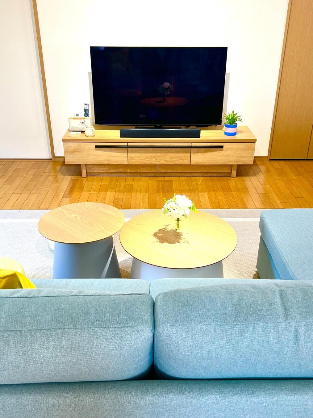 Two-Bedroom Apartment. Boasting a private entrance, this air-conditioned apartment features 1 living room, 1 separate bedroom and 1 bathroom with a bath and a shower. Guests can make meals in the kitchen that has a stovetop, a refrigerator, kitchenware and a microwave. The spacious apartment features a washing machine, soundproof walls, a tea and coffee maker, a dining area, as well as a flat-screen TV. The unit has 7 beds and 3 futons.