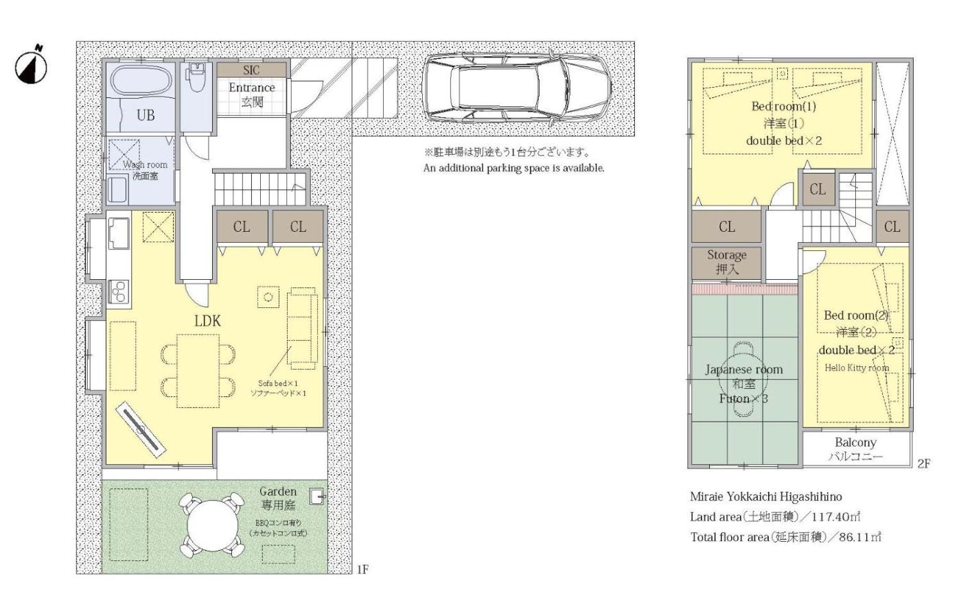 Three-Bedroom House. This holiday home features a hot tub. Boasting a private entrance, this air-conditioned holiday home features 1 living room, 3 separate bedrooms and 1 bathroom with a bath and a shower. Guests can make meals in the kitchen that has a stovetop, a refrigerator, kitchenware and a microwave. The holiday home has tatami floors and features a washing machine, a dining area as well as a terrace with garden views. The unit has 5 beds and 3 futons.