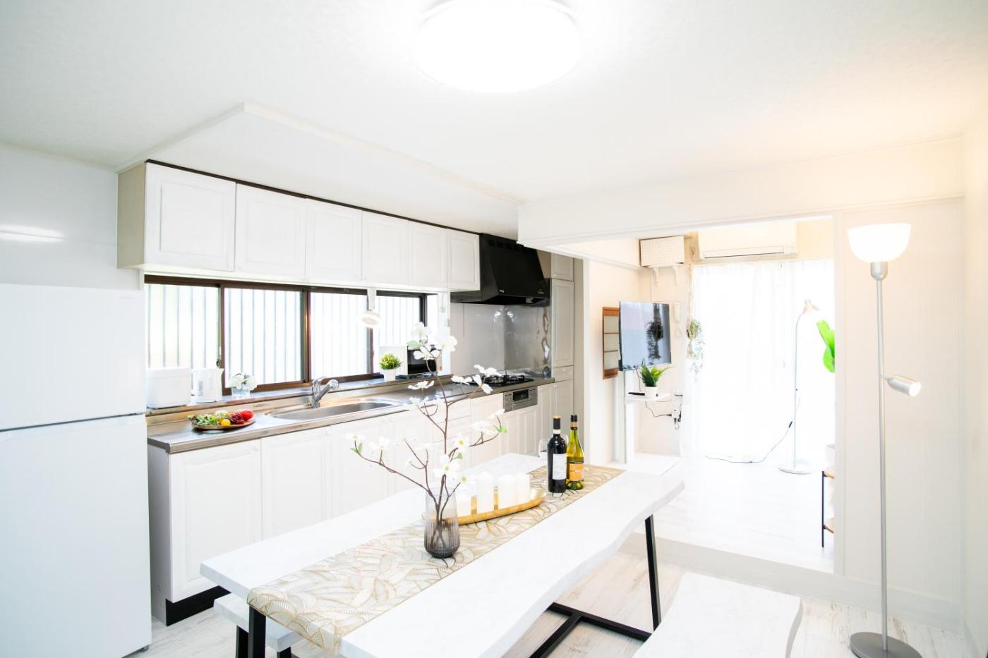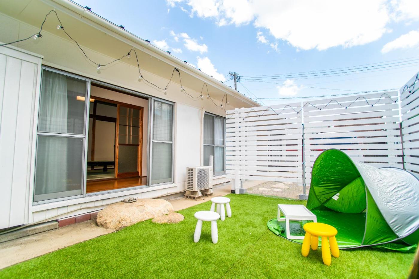 Three-Bedroom House. This holiday homes special feature is the hot tub. Boasting a private entrance, this air-conditioned holiday home includes 1 living room, 3 separate bedrooms and 1 bathroom with a bath and a shower. In the well-fitted kitchen, guests will find a stovetop, a refrigerator, kitchenware and a microwave. The holiday home has tatami floors and offers a washing machine, a dining area as well as a terrace with garden views. The unit has 4 beds and 6 futons.